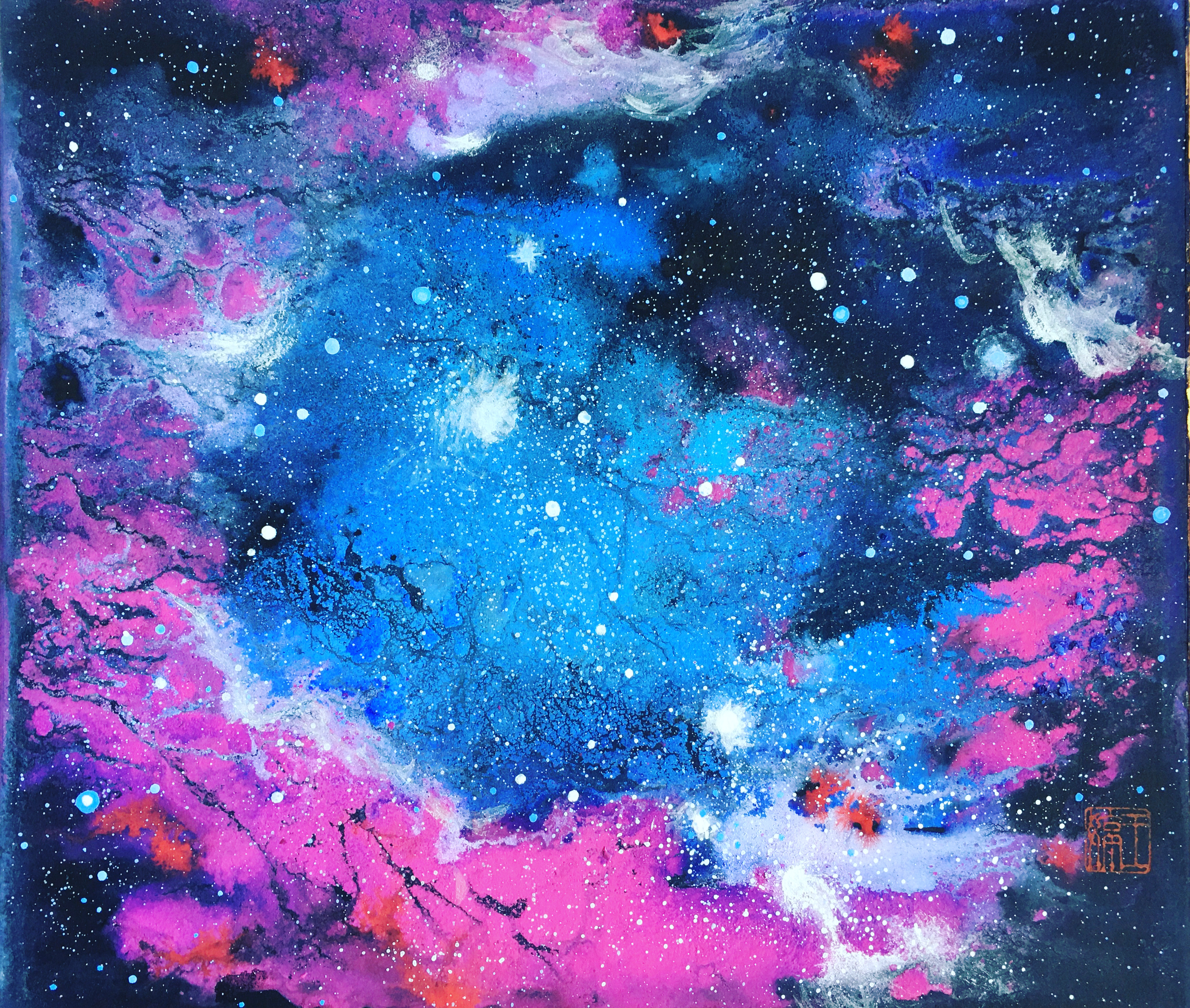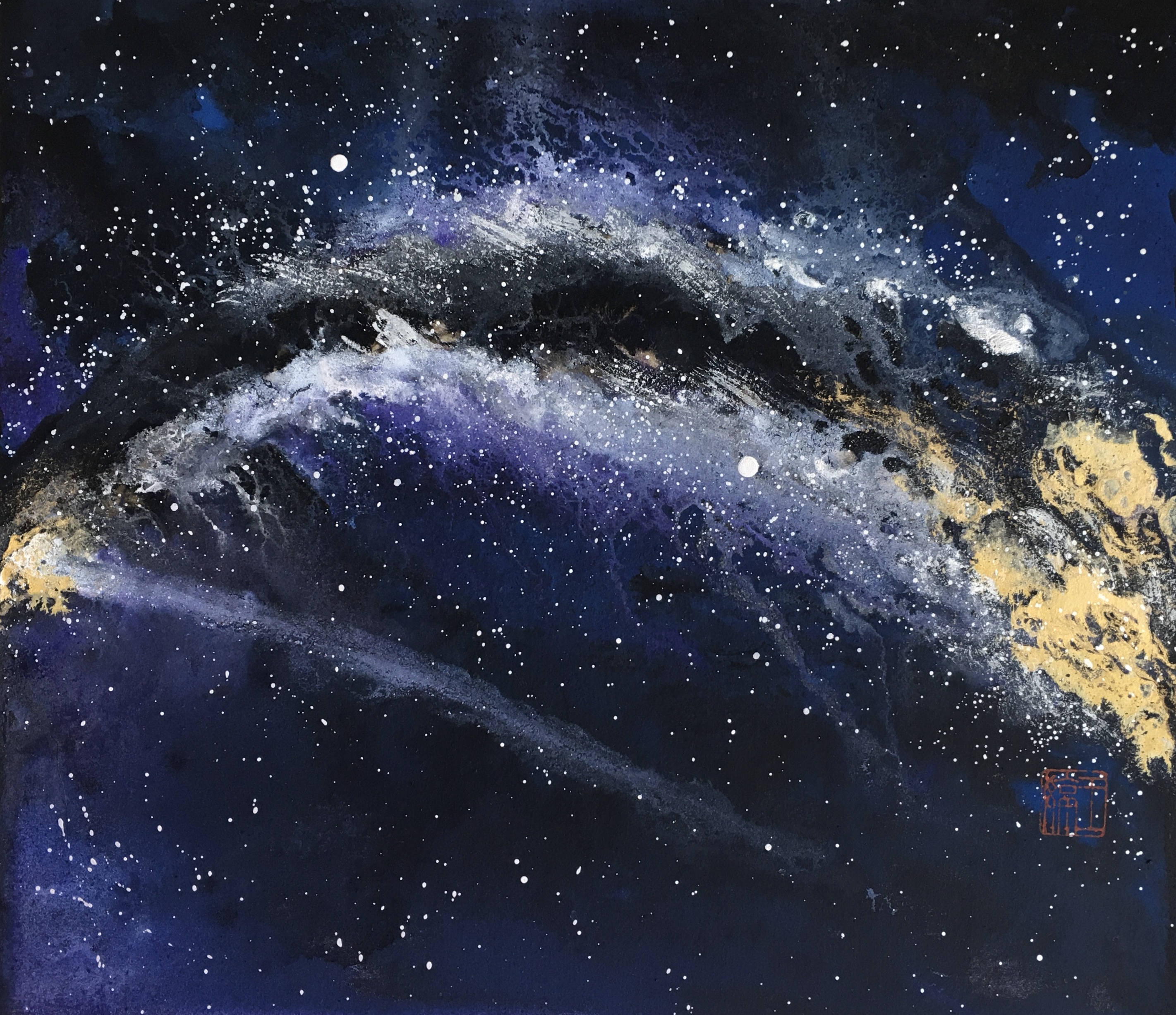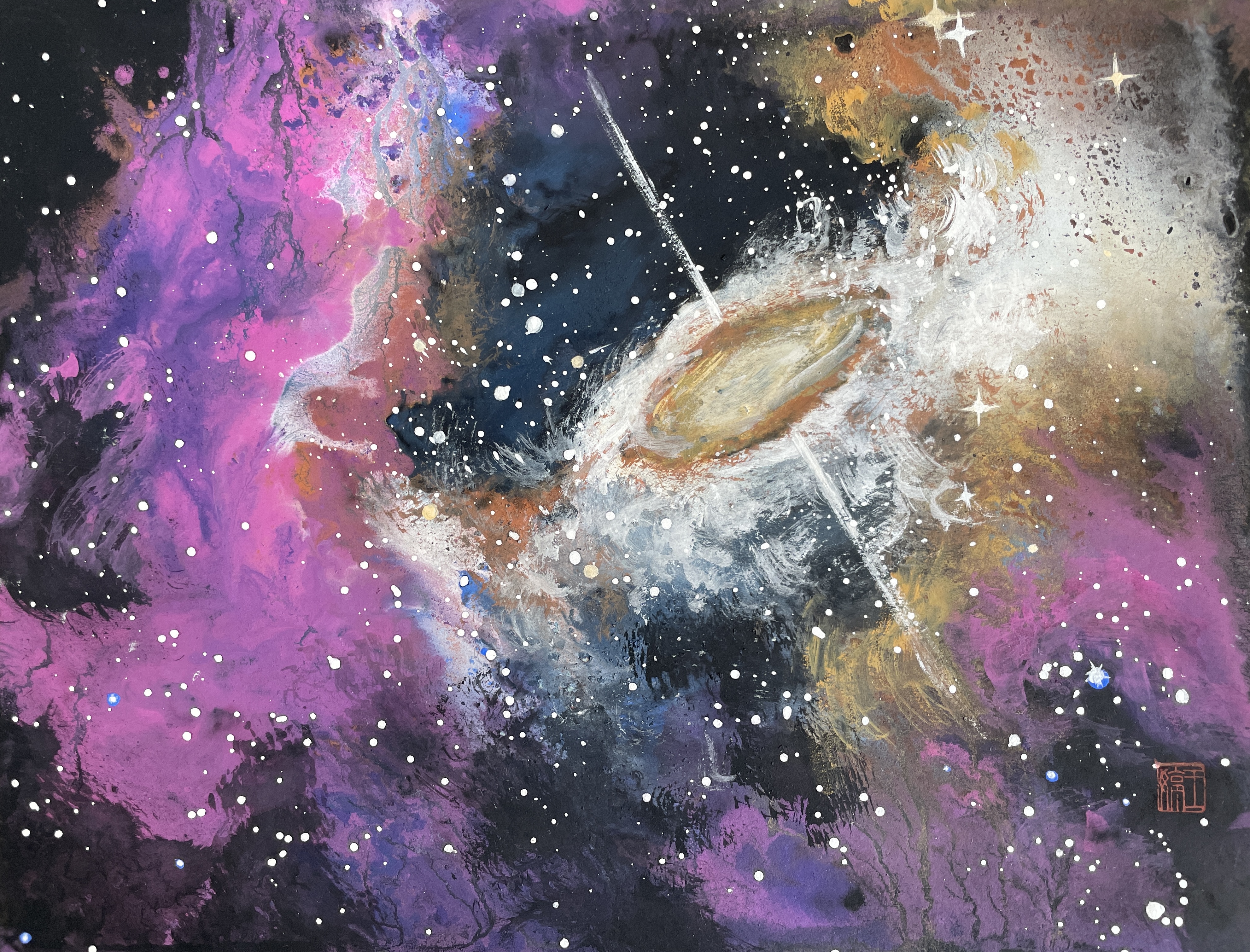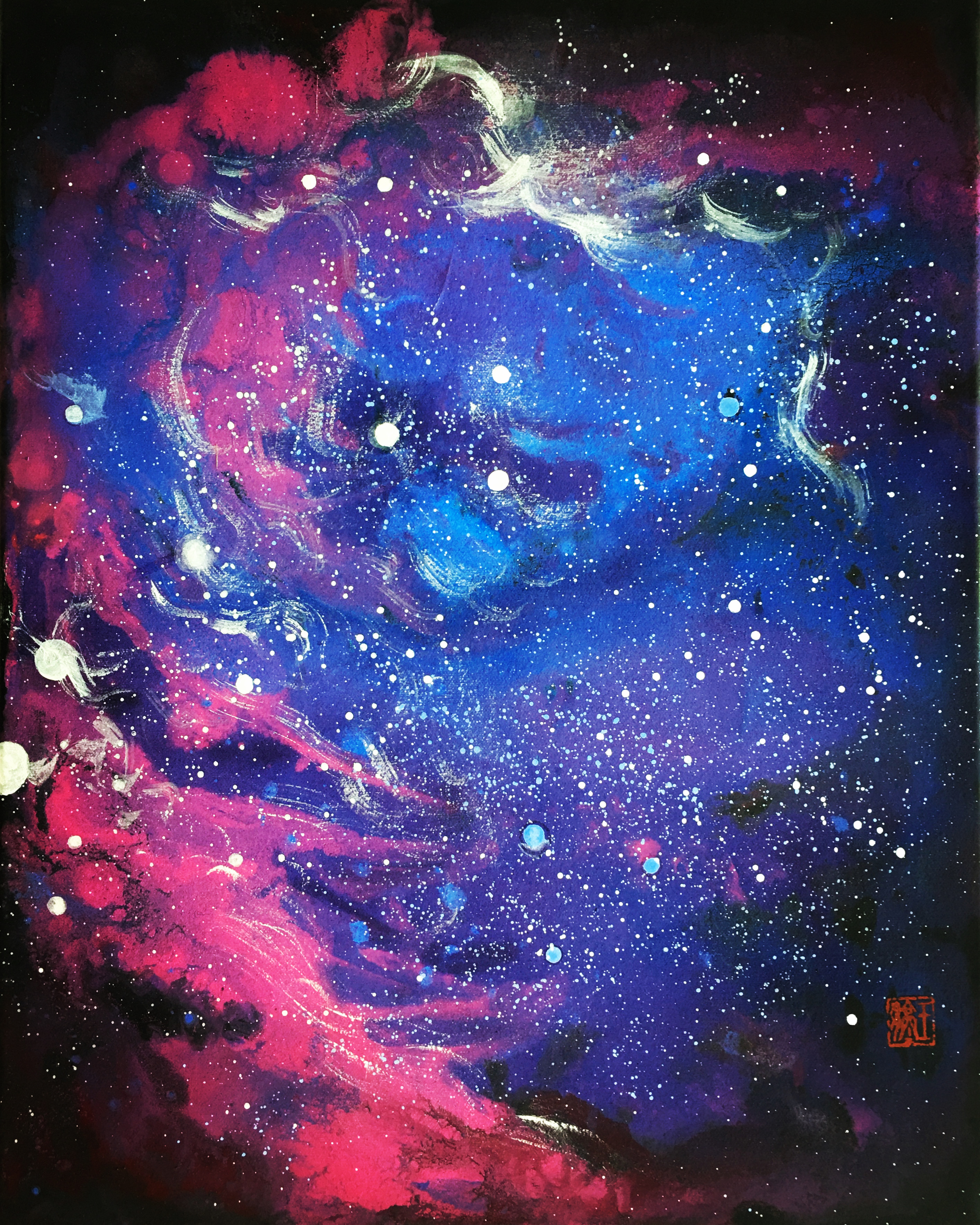 The universe is so marvelous and mysterious. Every time I see images of the cosmos, it makes me feel the infinite space, and how wonderful it is. I can’t resist presenting it on the paper.