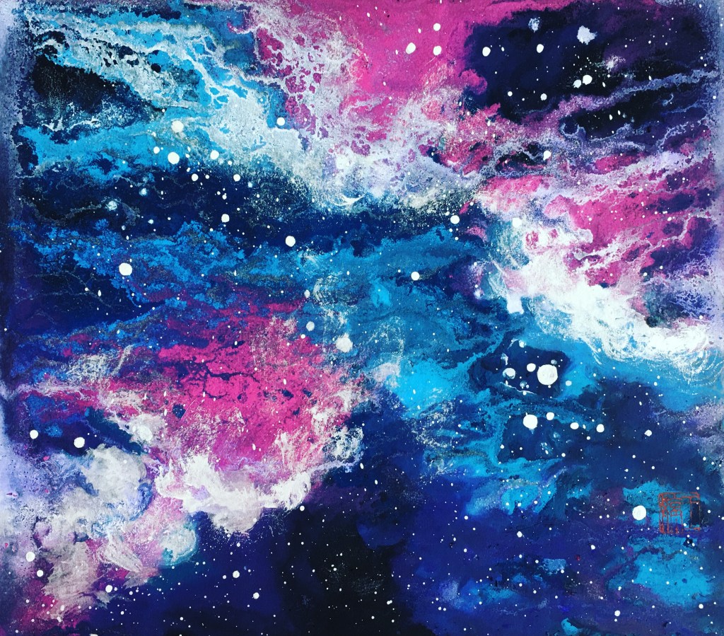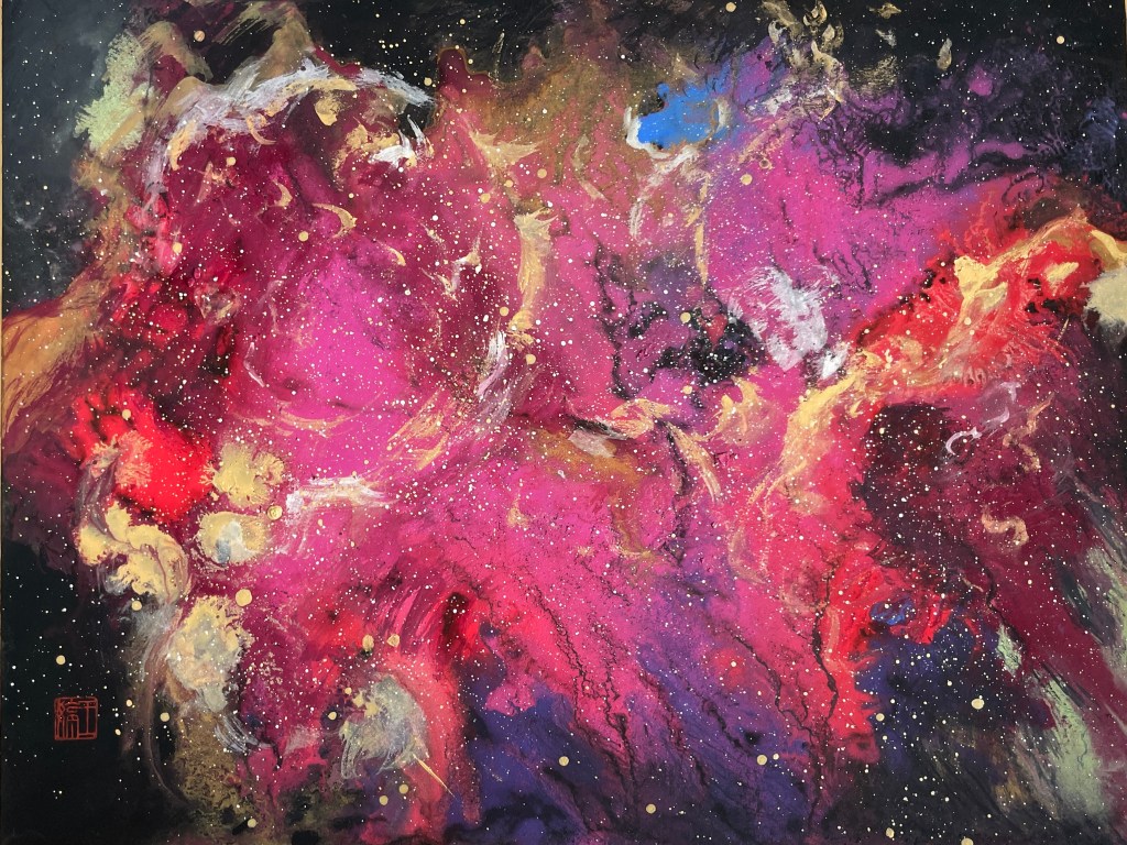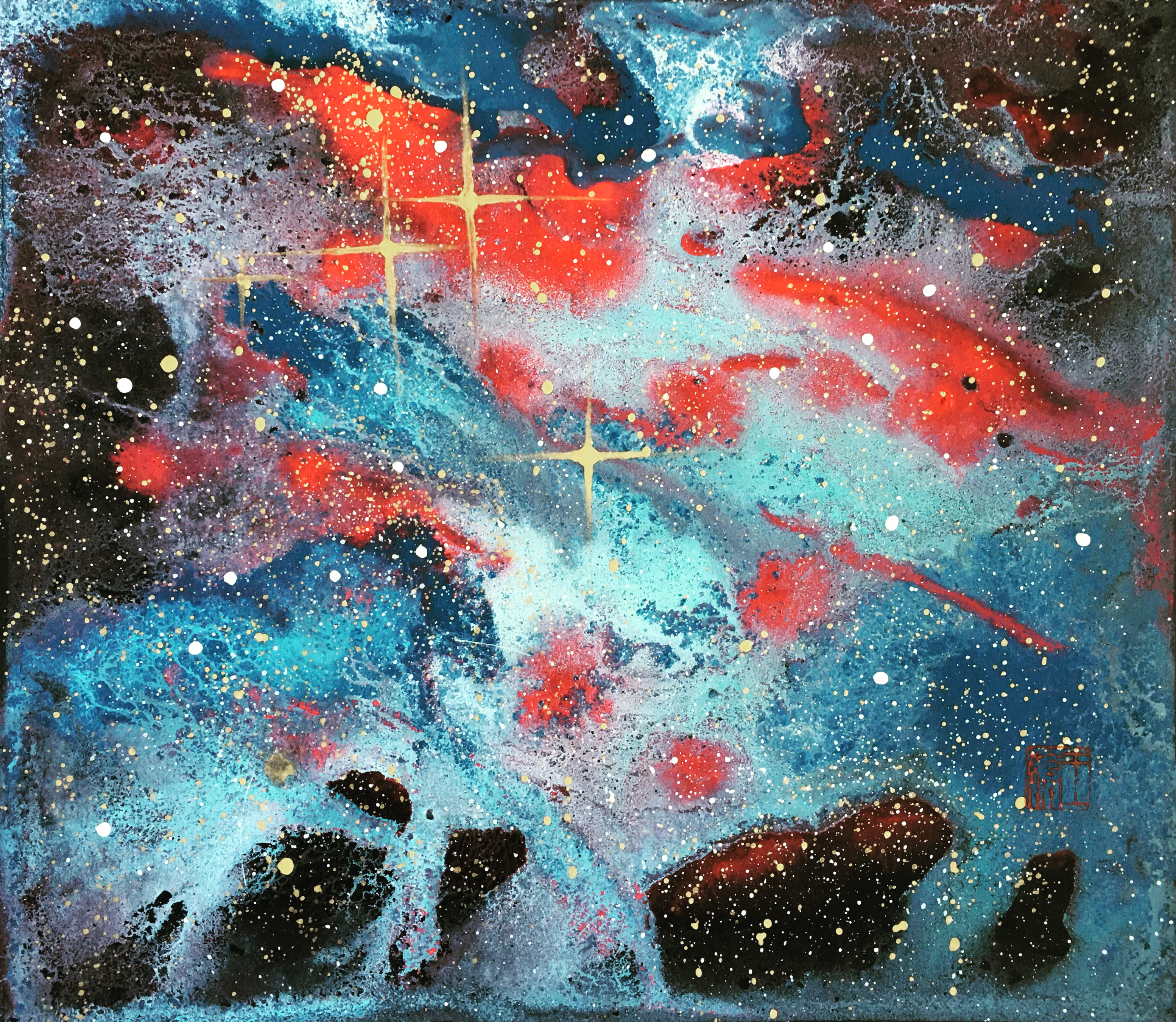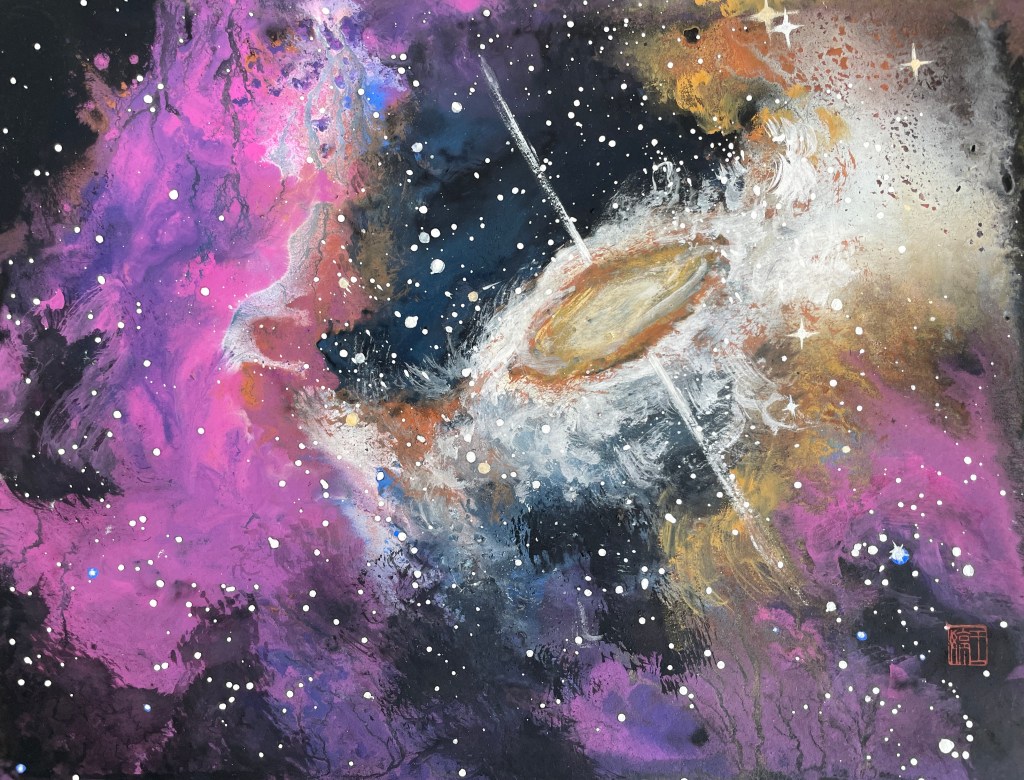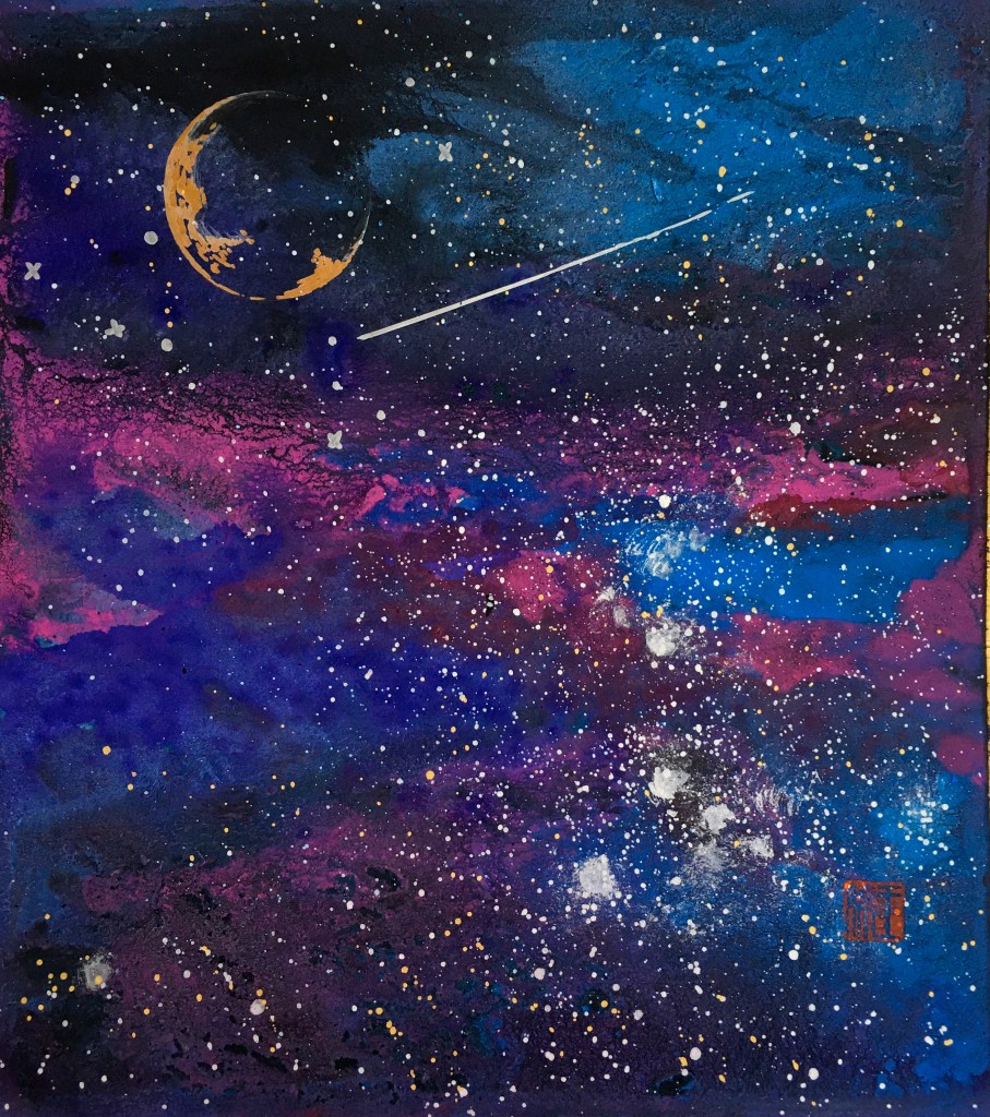 The universe is so marvelous and mysterious. Every time I see images of the cosmos, it makes me feel the infinite space, and how wonderful it is. I can’t resist presenting it on the paper.